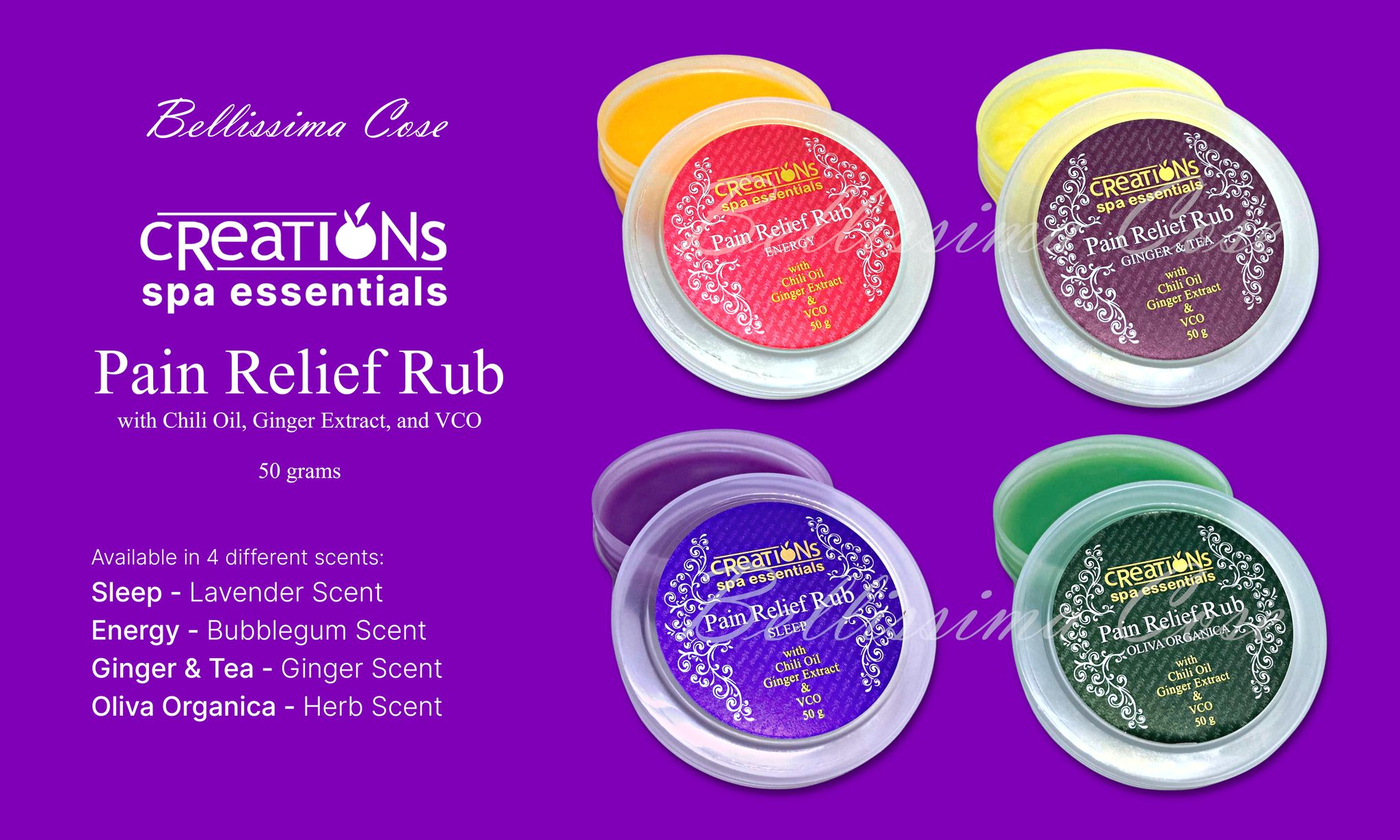 4pc CREATIONS SPA ESSENTIALS 50g MASSAGE RUB PAIN RELIEF RUB